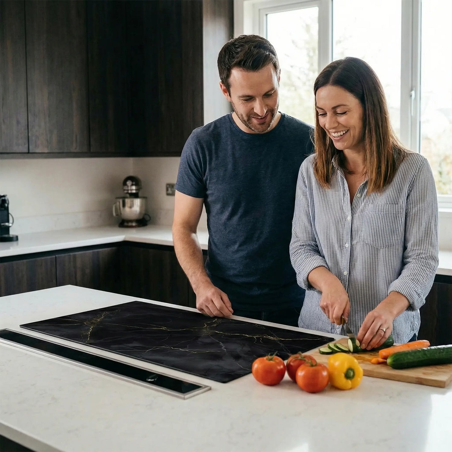 Egal, ob Sie ein Fan von minimalistischem Schwarz, einer warmen Holzoptik oder einem modernen Marmorprint sind - wir haben eine Kochfeldabdeckung für Ihren Geschmack. Unsere Kollektion besteht aus Dutzenden von Varianten, die speziell für jede Art von Küche entwickelt wurden. Sehen Sie sich zum Beispiel unsere schwarze Herdabdeckplatte an, eines unserer beliebtesten Themen. Diese schwarzeHerdabdeckplatte verbindet Eleganz mit zeitlosem Design.